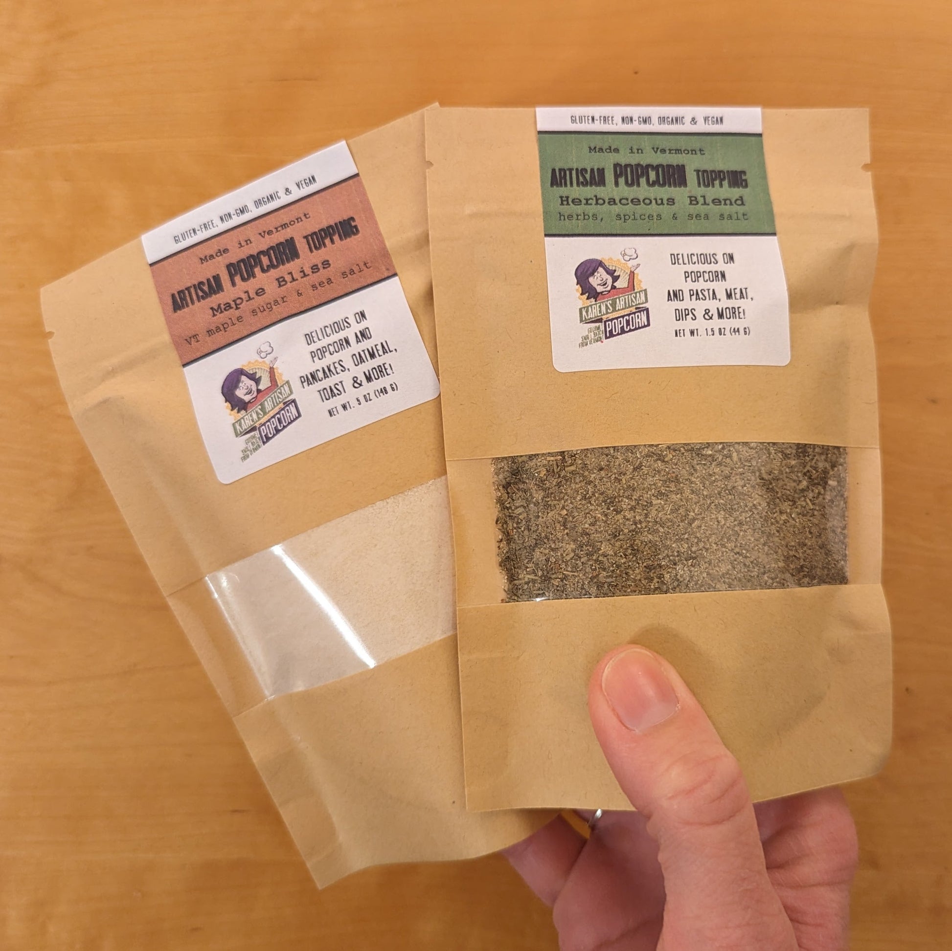 Do you just love the smell of popcorn wafting through your home when you make a batch? Well, then you will absolutely fall in love with my special blend of organic, gourmet kernels. Now you can make Karen's Artisan Popcorn right at home, HOT of the stove! Pair it with one of my Artisan Popcorn Toppings for the ultimate KAP experience, or get one of my DIY Popping Kits. Perfect for movie nights, game days, parties, lunchbox treats, corporate gifts, Made-in-Vermont gifts, or treat yourself, you deserve it!