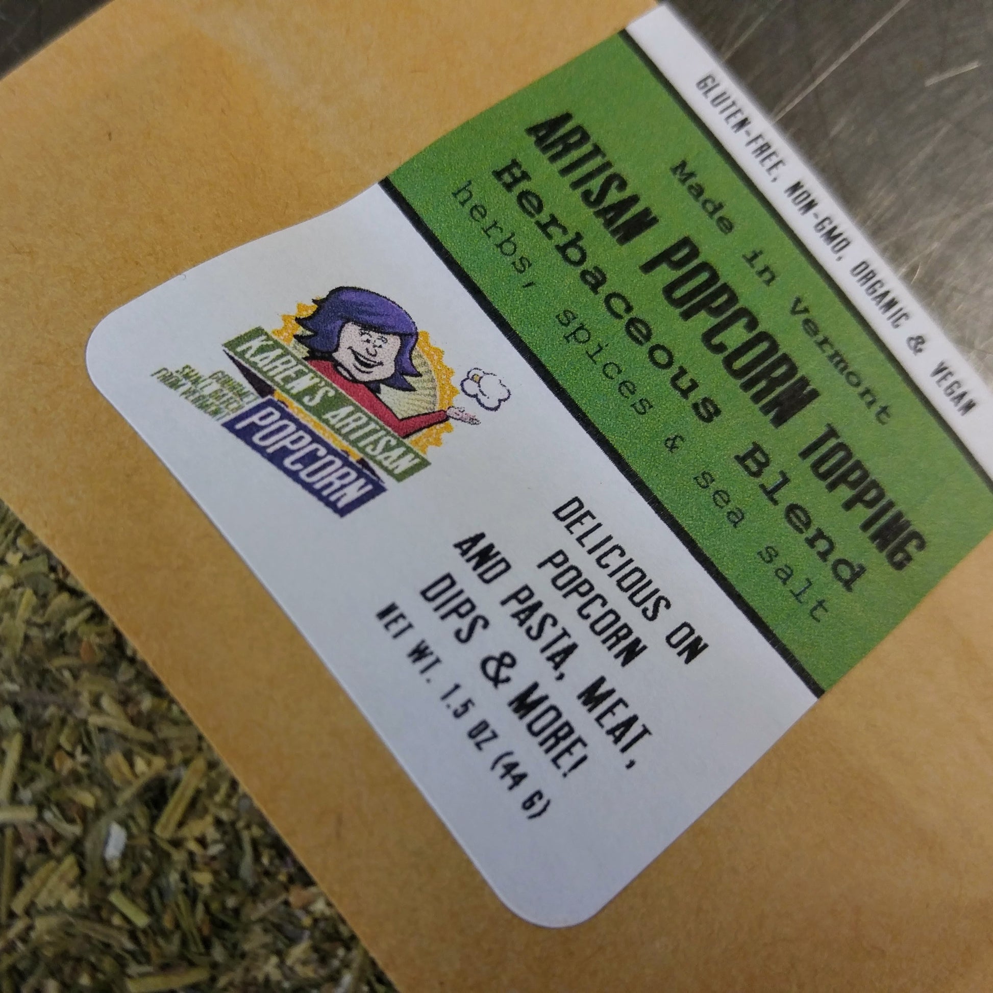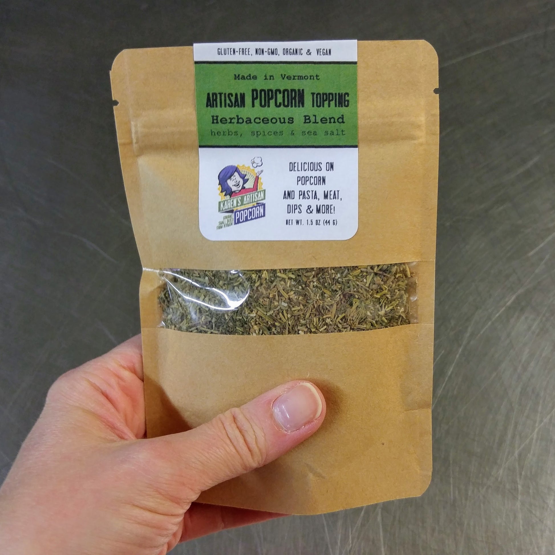 My original Herbaceous Blend Topping flavor is what started it all at Karen's Artisan Popcorn. You'll taste a perfect balance of herbs, spices, and sea salt, to produce that taste that pleases every palate. Delicious on popcorn as well as on pasta, as a meat rub, with rice, on salad with a little olive oil and more! It's a must have, special and unique seasoning to have in your spice rack.