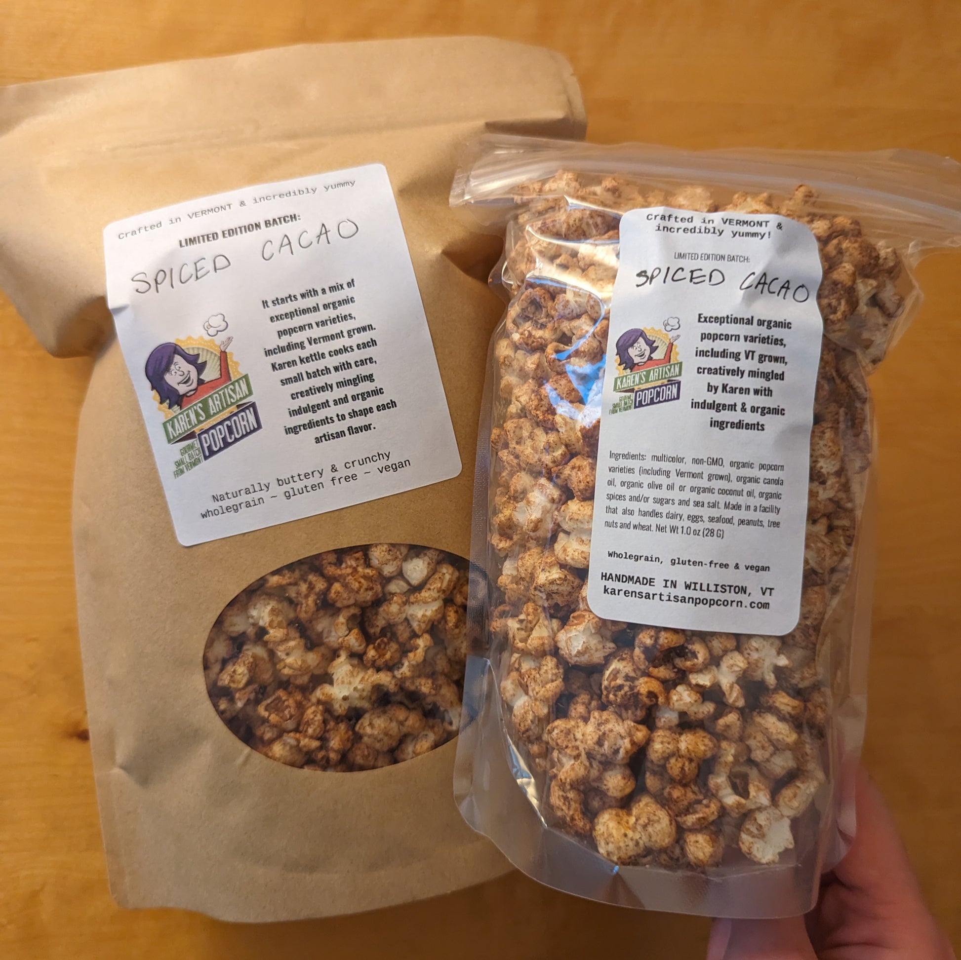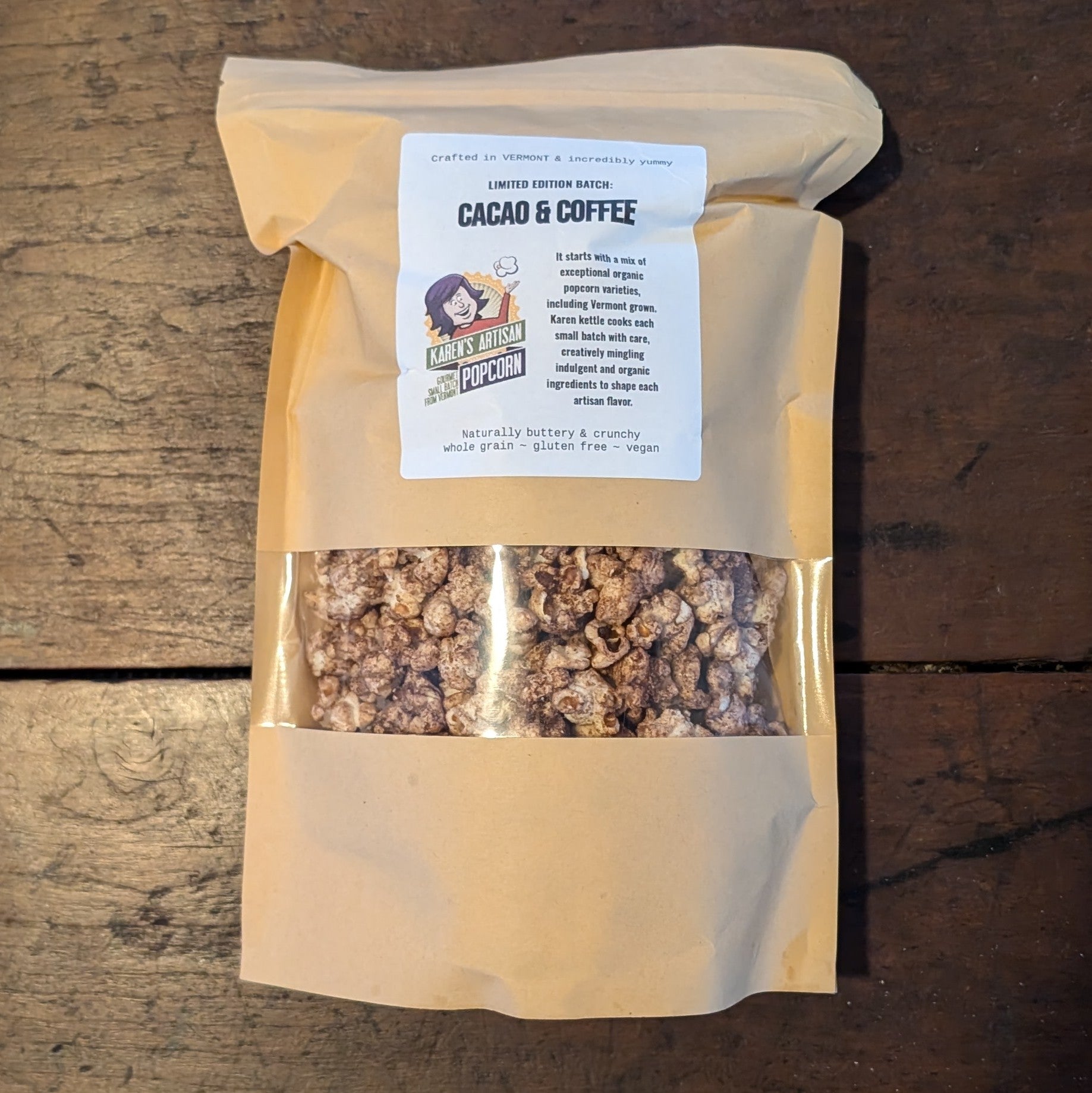 Cacao & Coffee -- Dark cacao powder mixed with cane sugar, raw sugar and powdered sugar for a decadent dark chocolate profile. Add in aromatic espresso powder to deepen the flavor, and just enough sea salt for that perfect kettle corn flavor.