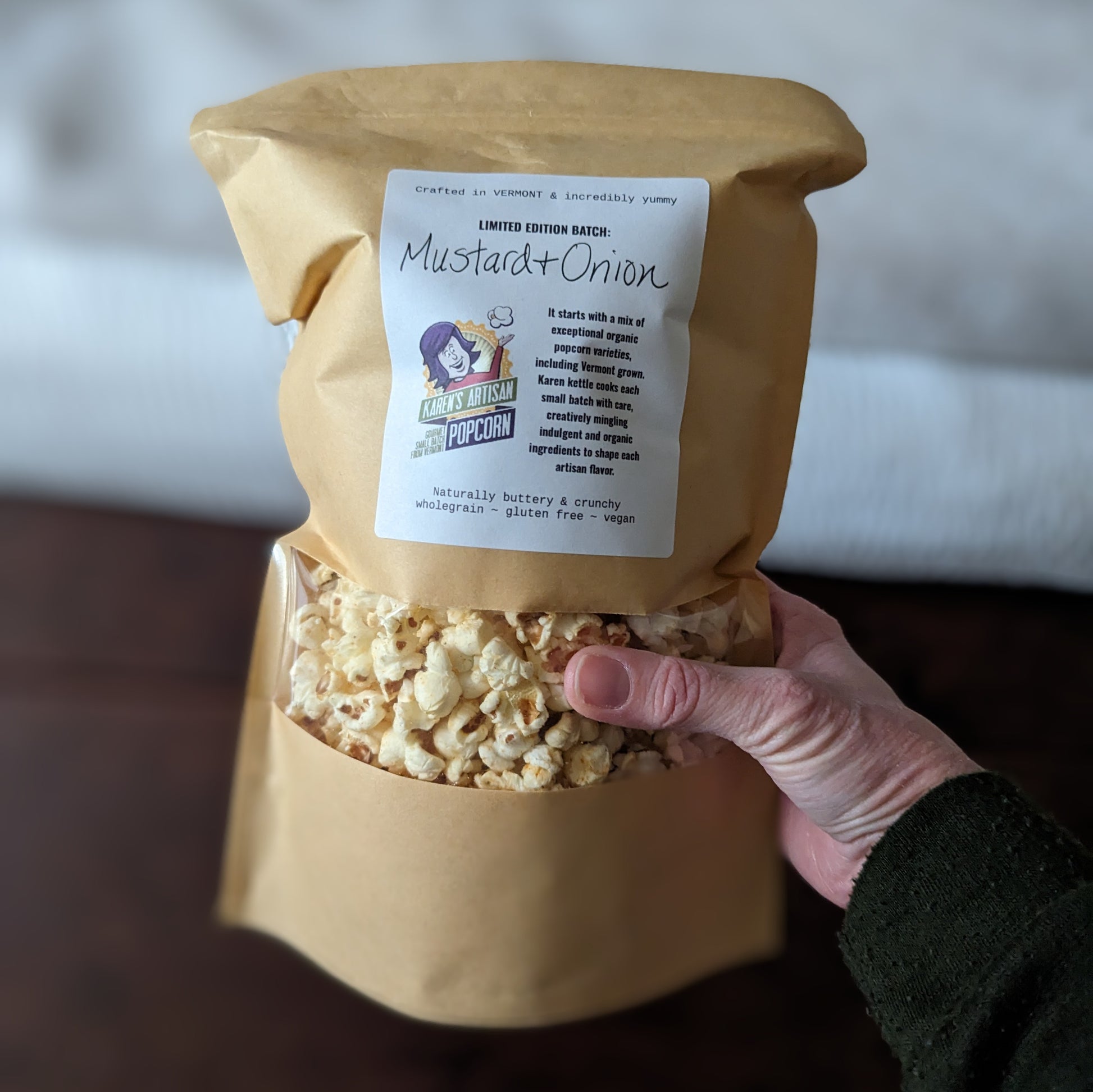 Mustard & Onion -- A fun mix of mustard powder, onion with some cumin, smoked paprika, black pepper, garlic and sea salt. This is one I'm going to have to add to the regulars! Naturally buttery and always organic, vegan and gluten free!