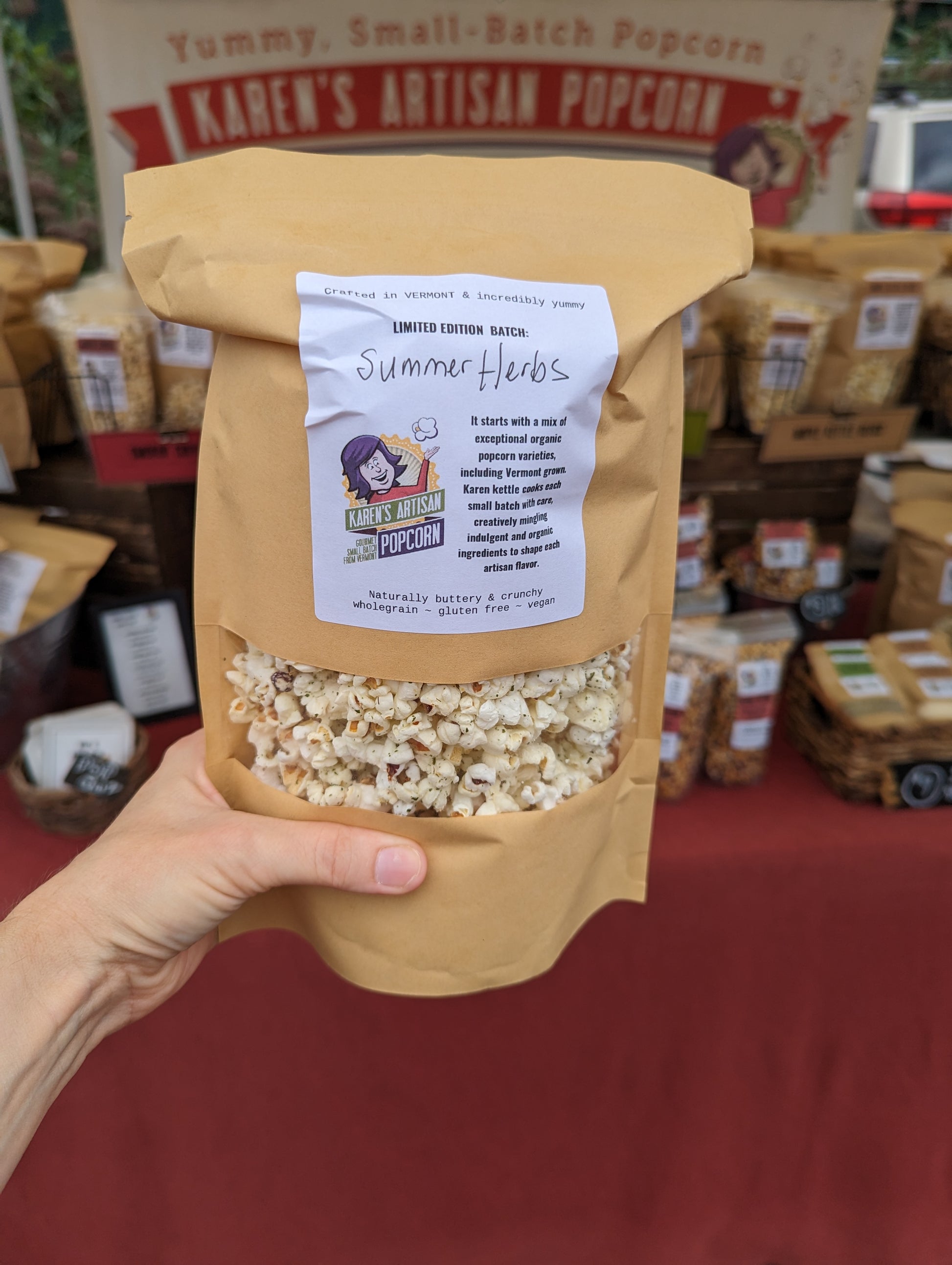 Summer Herbs -- A buttery and herb-y mix of parsley, thyme and sea salt. A fun mix of Summer grown herb flavor on my naturally-buttery popcorn with the perfect amount of saltiness.